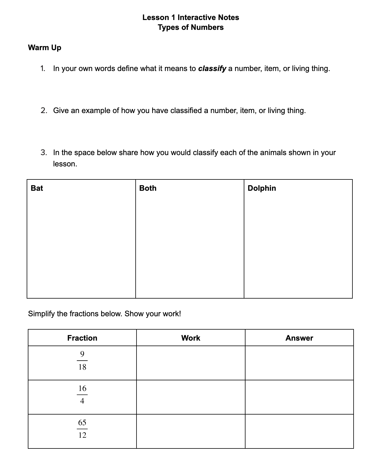 To begin the lesson, click the Interactive Notes button to print the Interactive Notes pages for this lesson.