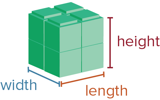 To find the volume of a cube, multiply the length, width, and height together.