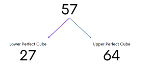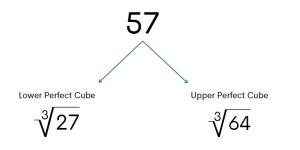 The first step is to determine what two perfect cubes 57 is located between.
