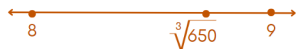 On a number line, the approximate location of the cube root of 650 will be closer to 9.![]()